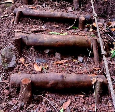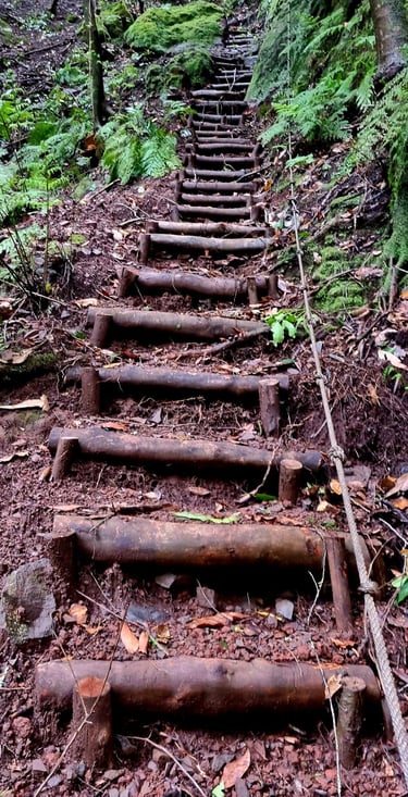 Au bout d'une demi-heure, finie la rigolade. Le chemin s’arrête au pied d’un escalier. Je lève la tête au maximum et je vois que ça monte à perte de vue. Allez ! C’est parti. Un pas après l’autre. Une marche après l’autre. C’est comme cela qu’on découpe un grand objectif en sous-étapes réalisables. En quelques minutes le fond de la vallée a disparu. Je suis toujours au milieu des maisons et des jardins. Je m’imagine les locaux qui l’empruntent probablement tous les jours… Je me souviendrai longtemps de cette séance infernale de step qui dura vingt bonnes minutes ! L’exercice parfait pour avoir des cuisses en béton !